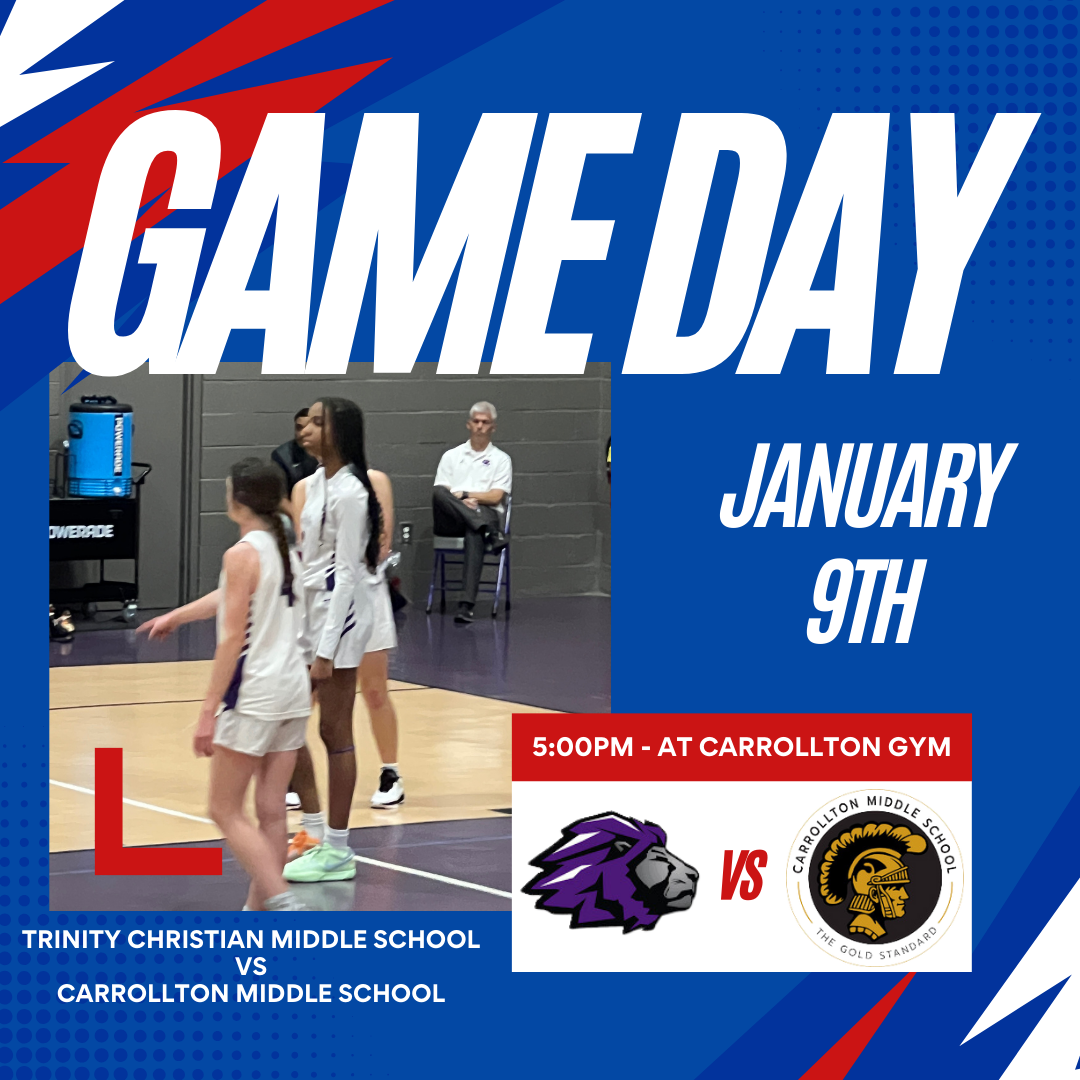 The anticipation is building as the Trinity Lady Lions take on Carrollton Middle School in an exciting basketball matchup! Both teams are ready to give it their all, and fans can expect a game packed with heart, hustle, and high-energy action.